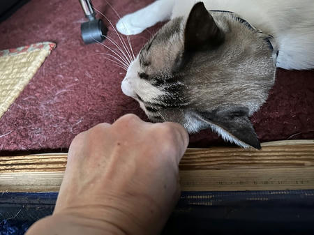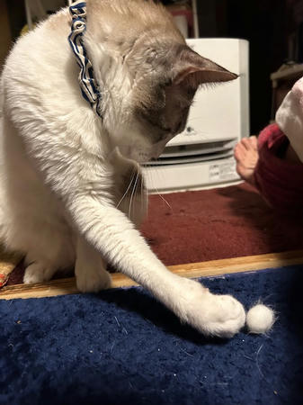 自分の毛玉、チョイチョイ♪