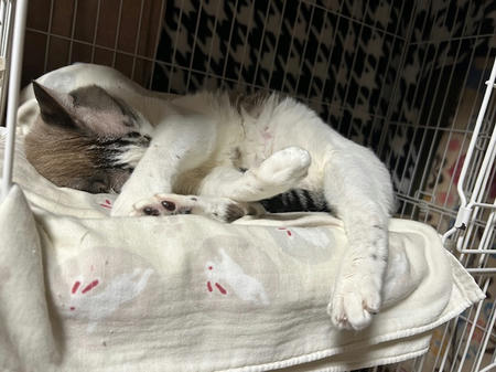 あんよ、ピーンで、ピンクの肉球が可愛いね