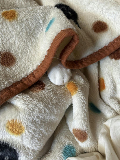 朝から、おかぁたんの布団の隣で、ギュッとしてます( ´艸`)