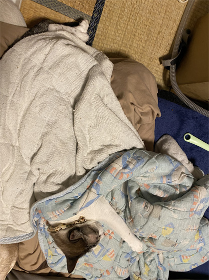 朝日の中で日向ぼっこ♪気持ちイイね♪