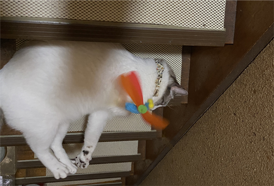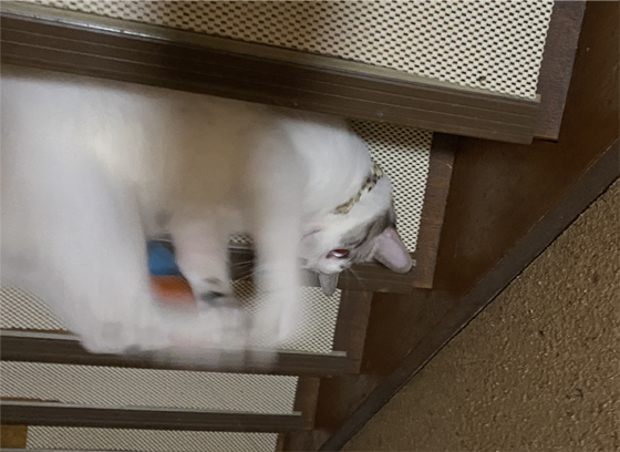 階段で、パタパタトンボと戯れる。。。