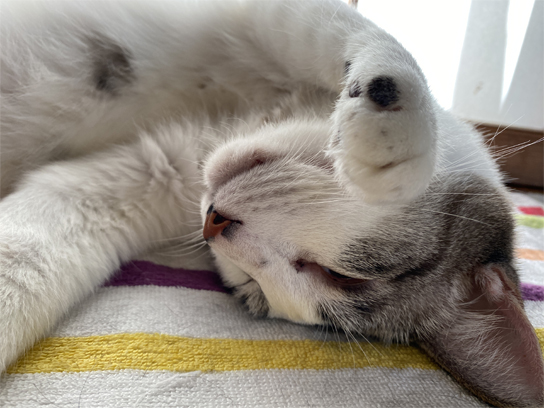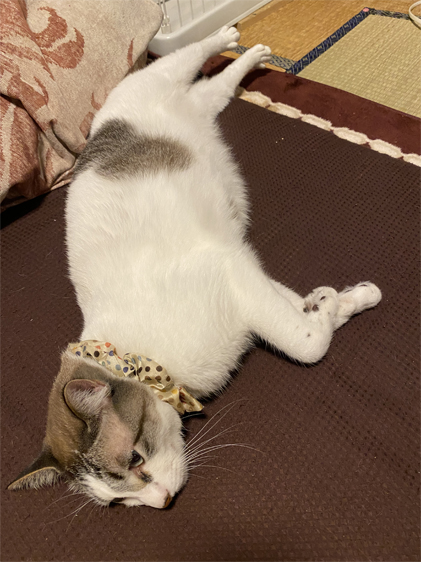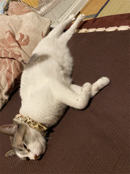 そのまま寝るのかー!?!?!?後ろ足ーーー!!!