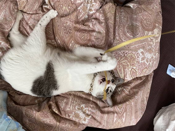 包んでた紐で、ジミ遊び♪可愛いね♪のっぴ~ちゃん♪