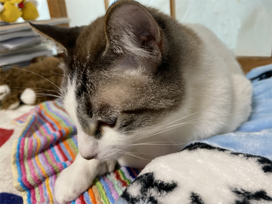 朝、掛け布団を枕にしてたのっぴ~。( ´艸`)