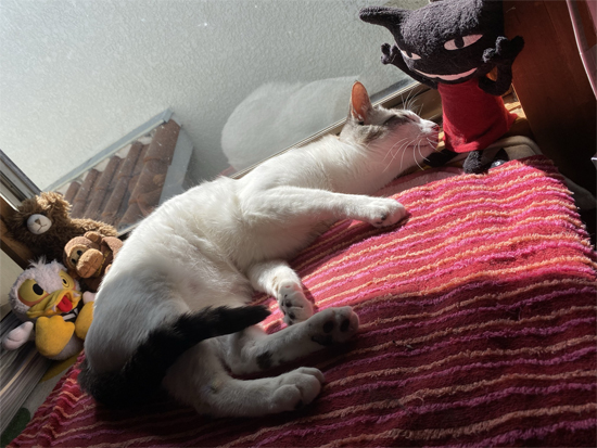 ねむねむなんでし!!!早く、ねるでし!!!って感じでしっぽ、バッタンバッタン(・。・;