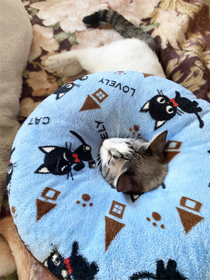 真ん中に穴のある、クッションに突っ込んだ、にこ。