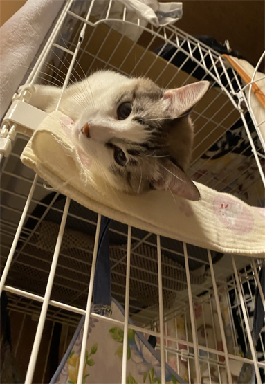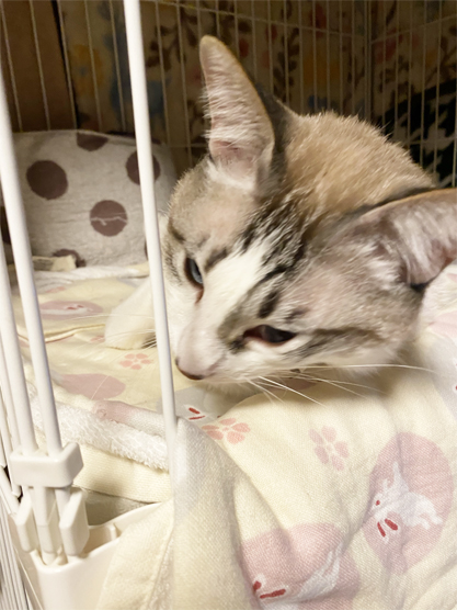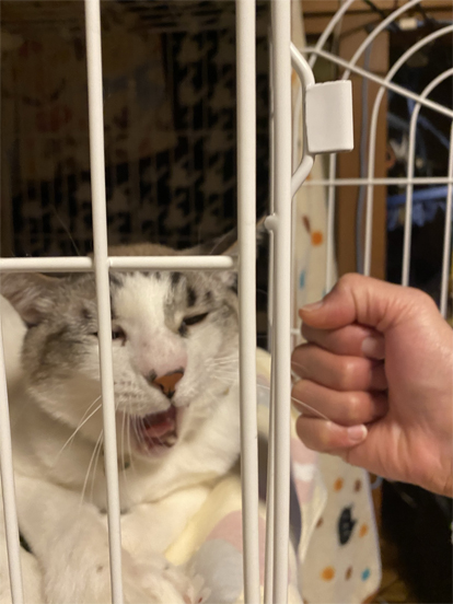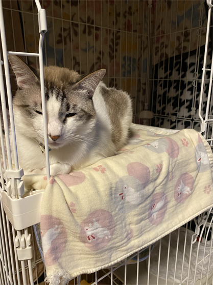 また、ケージの柵にくっついて。