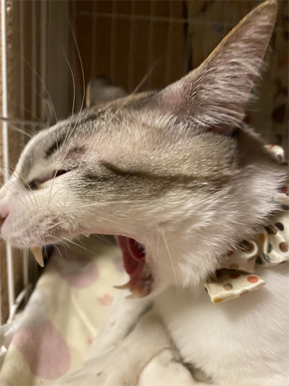 茶色い目やにが付いてる・・・この前のワクチンの時に、お医者さんで