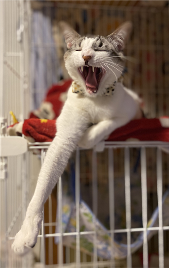 いっぱいに伸びてサイコー。。。お目目怖い~(笑)