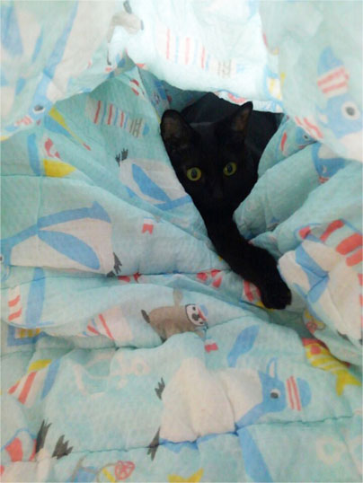 おもむろに、お布団トンネルに戻るとこ。