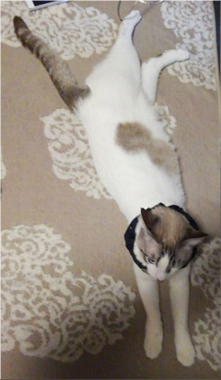隣の部屋に行く途中、ふっと振り返ると、にこ