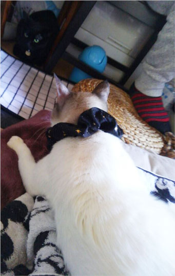 先日のくりすさん♪のブログで、りりぃちゃんが枕にしてた