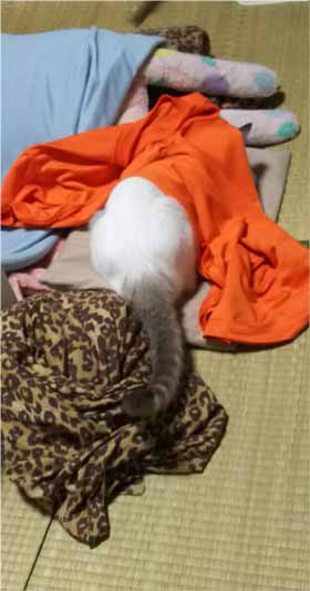 Tシャツ頭からかぶせたら、その中でバタバタ