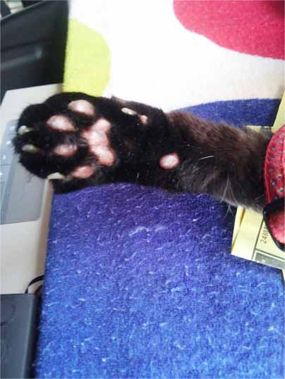 ビッグエーのチラシの上で(笑)首輪と戯れるのっぴ~ちゃん♪