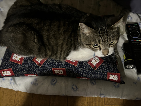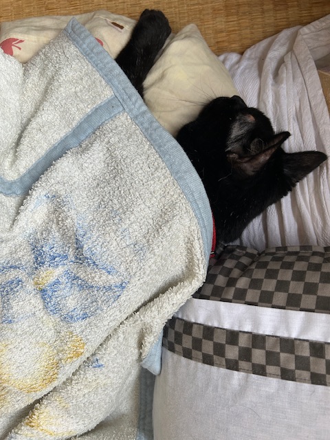 寝てます。枕から頭落ちちゃったみたいね(笑)