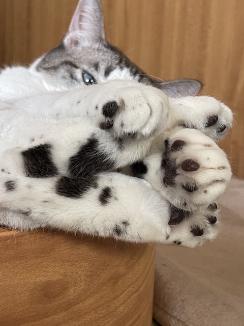 おかぁたんの足先に乗ってるのっぴ〜
