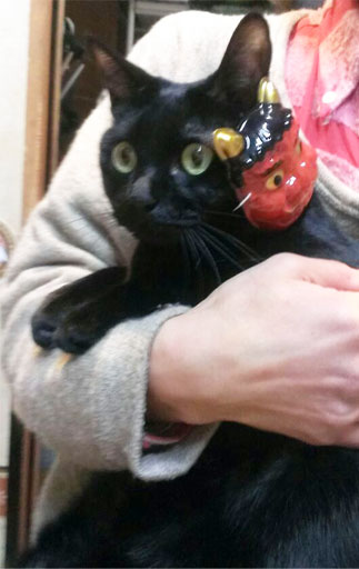 メインターゲット『鬼のお面をお猫様の額に乗せよ!』