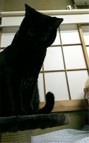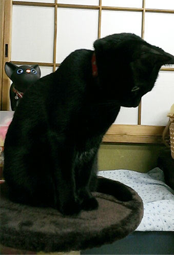 この下に、自分のご飯とお水があります。それを、ぼーっと見つめてます(笑)