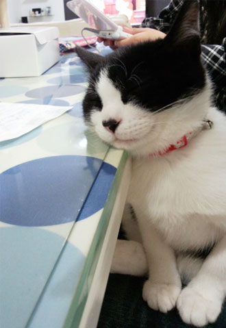 ママの膝に乗ってきたと思ったら、暫くしてテーブルに