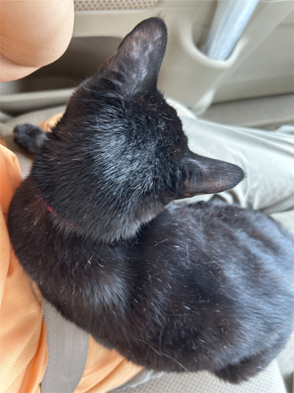 膝に乗って静か♪車は好きなの♪