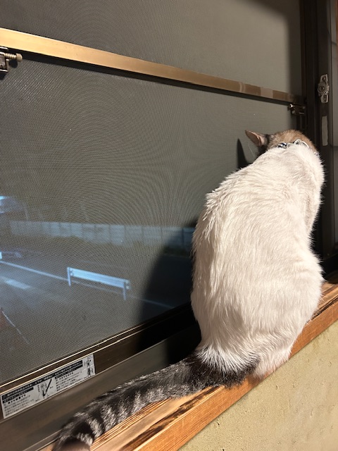 夜の外が興味深々♪しっぽが物語ってる♪