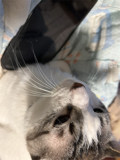 こちらは、おとぅたんの携帯をあたためてるにこです。