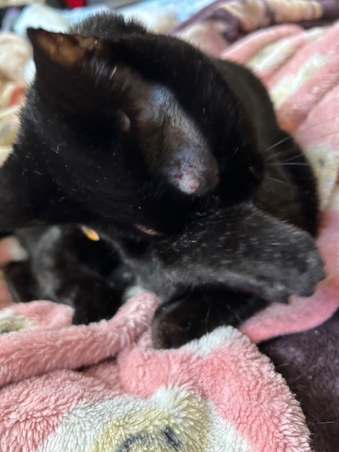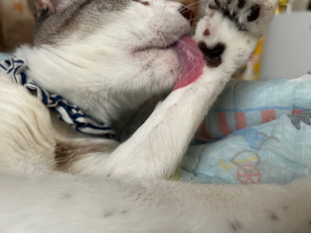 毛繕い♪ペロリン♪ピンクの舌が可愛いね