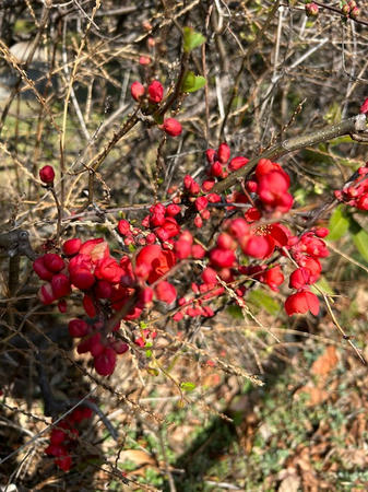 おまけ。会議の帰り道の公園で、木瓜の花