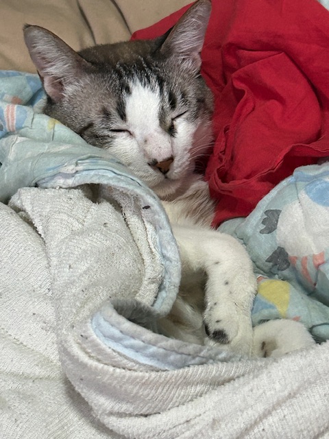 赤いハンカチは、タオルケットの中に入って