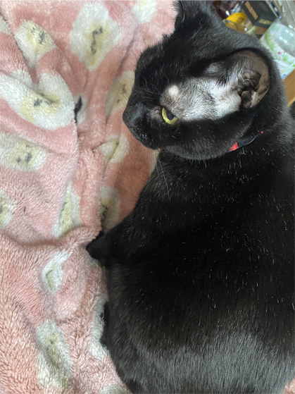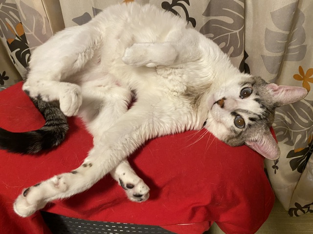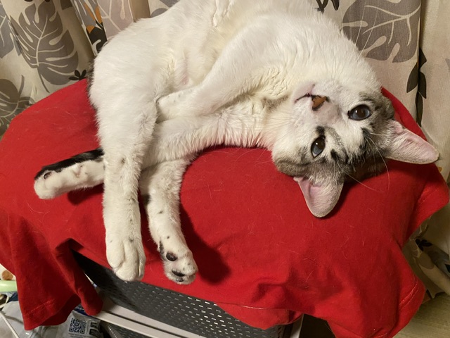 お目目の上、両方ともきれーに毛が薄いね!