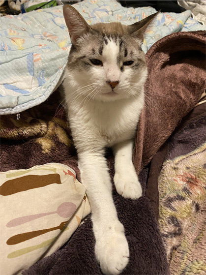 ブランケットにアゴ乗せのっぴ〜ちゃん♪