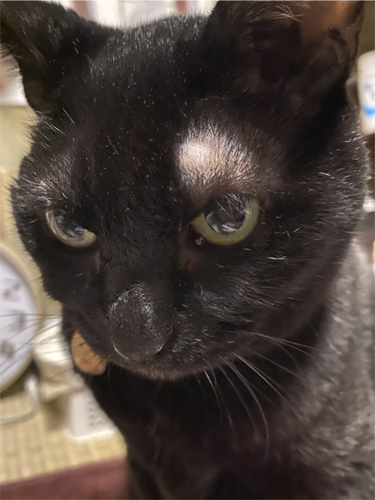お目目の上、両方ともきれーに毛が薄いね!