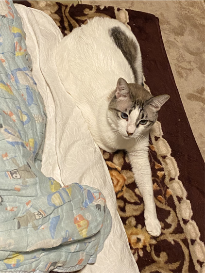 お布団に沿って、寛ぐにこ。
