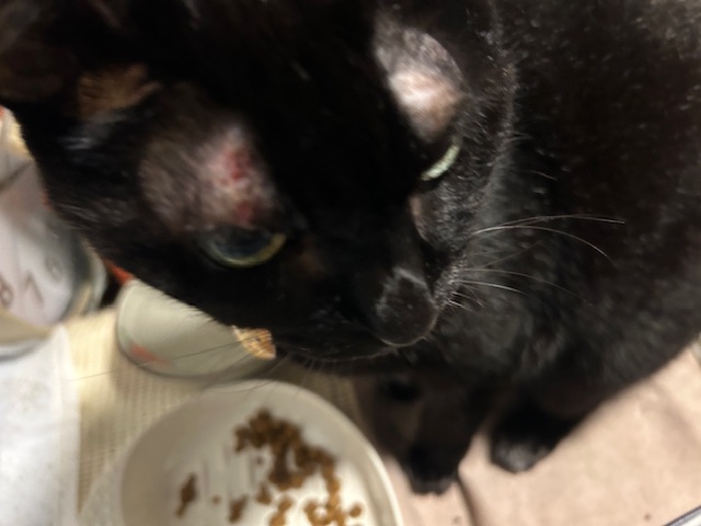 お目目の上、今度は右が血、出ちゃったね