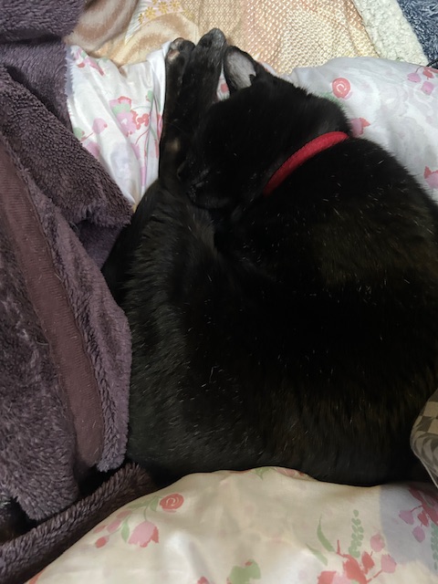 腕枕ののっぴ〜ちゃん♪真っ黒だけど可愛いね❤️