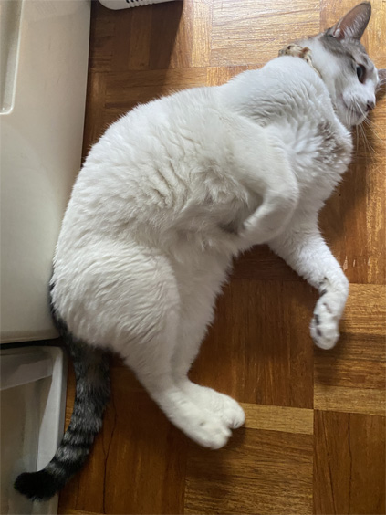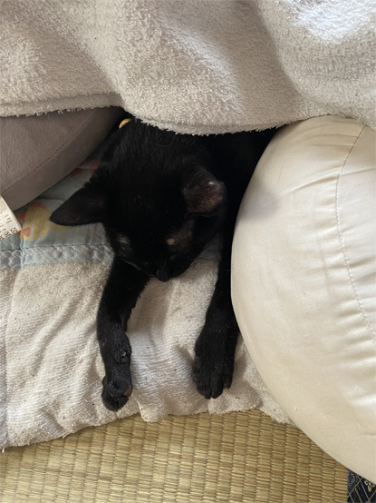 なぜか横に伸びて寝るんです(;´・ω・)おかぁたんの