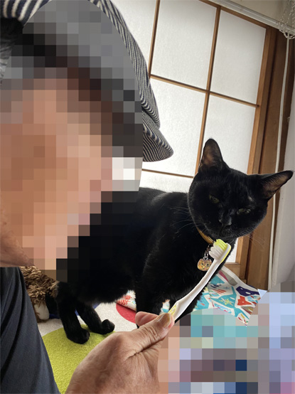 お出掛け前のおとぅたんの歯磨きの匂いチェックです♪