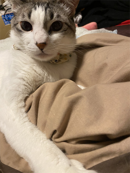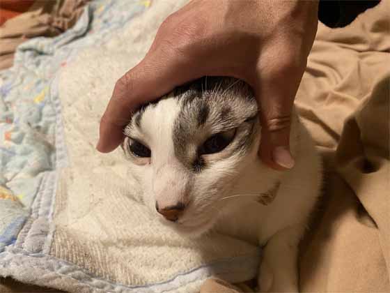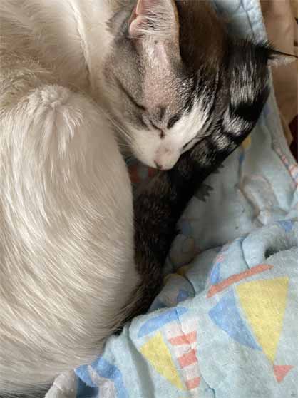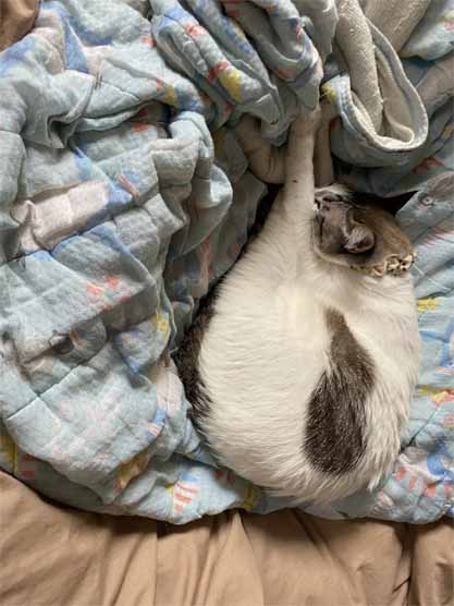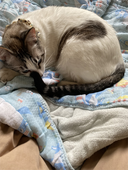 この前は、しっぽが顔にまとわりついてたけど