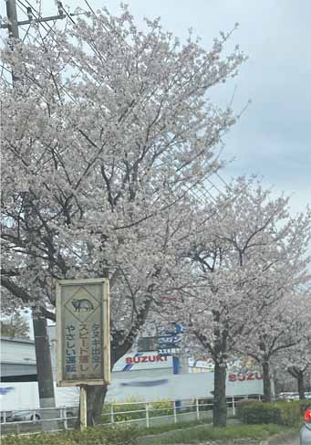 おとぅたんが出かけて、ちょうど桜並木通ったって