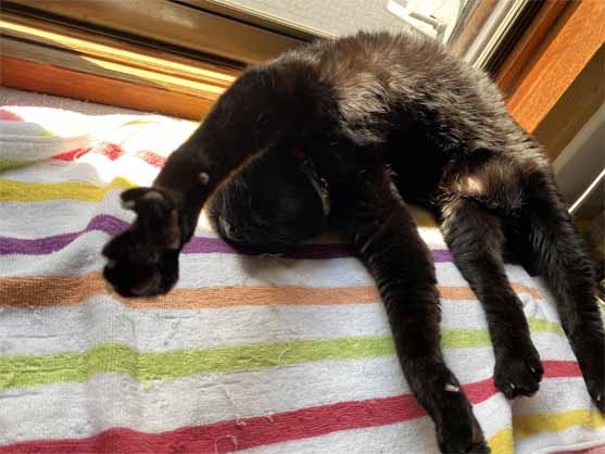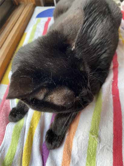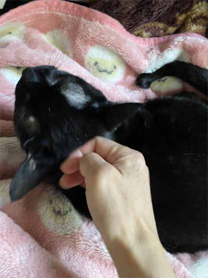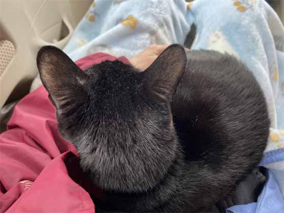 頭、撫でてたら、お耳が真っ直ぐ一本線になっちゃった(笑)