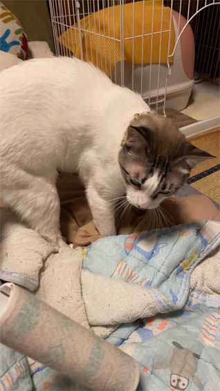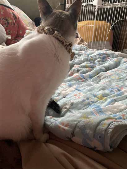 相談に。夜中一時間おきにお腹に乗って来て、ご飯。