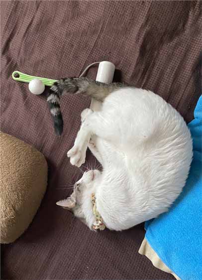 今朝、ケージの中のトイレ掃除やら、ご飯
