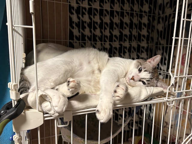 一生懸命指の間を、毛繕い♪可愛いね❤️