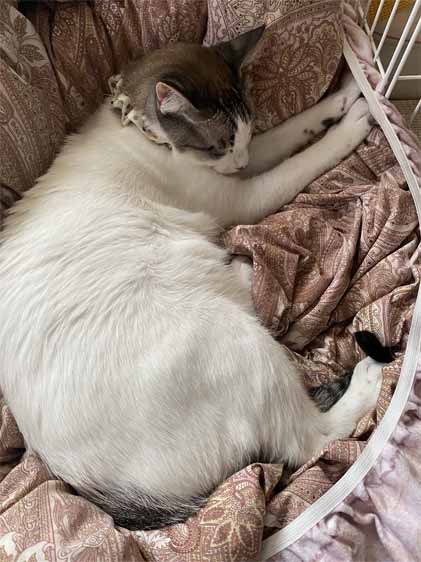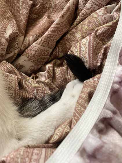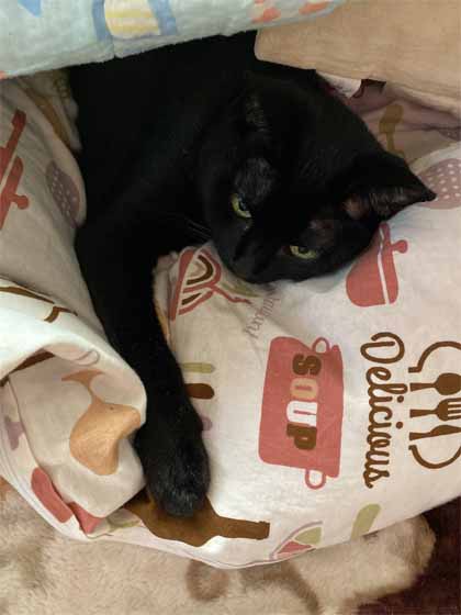 今朝、おとぅたんの足の下敷きになって気持ちよさそうだったんだけど