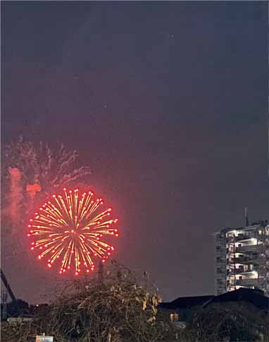 花火がどこかで、打ち上げられました。